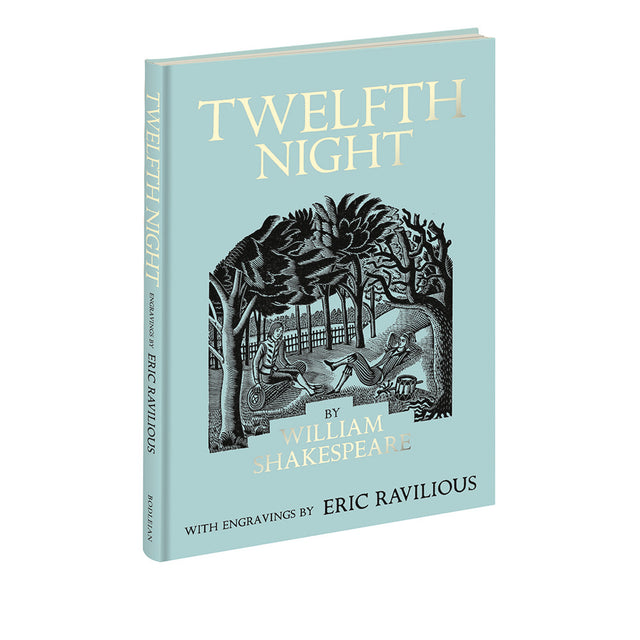 Artist and illustrator Eric Ravilious was fascinated with Elizabethan and Jacobean poetry and drama, both as literature and as visual inspiration. His playful wood engravings depict characters such as Viola, Sebastian, Sir Toby Belch and Malvolio in period costume on imaginary stages or in garden scenes. Decorative borders and vignettes enliven the pages.