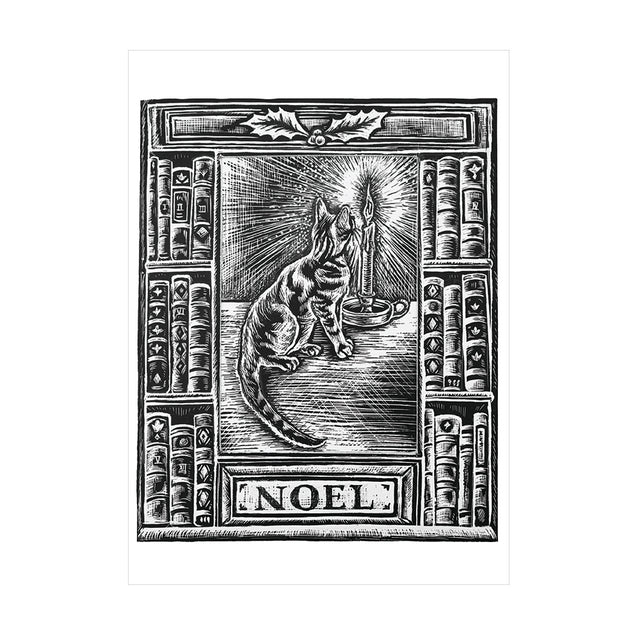 Celebrate the festive season with a charming Christmas card by artist Susie Foster, available exclusively at Bodleian Libraries. This delightful illustration showcases Hector, the festive library cat, surrounded by books and a glowing candle, perfectly capturing a warm and cosy Christmas feeling.