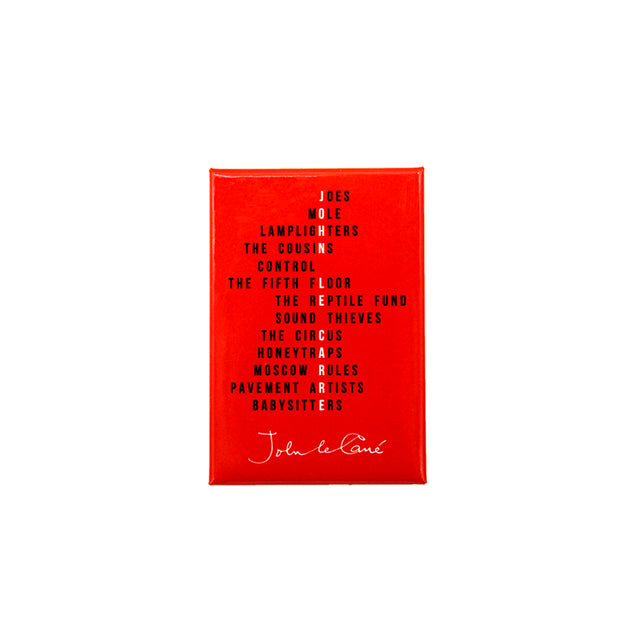 A typographic magnet showcasing the vocabulary made famous by John le Carré.