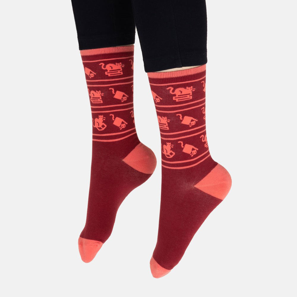 Cats and books: is there a more the purrfect combination? Keep your feet warm and whimsical with these charming socks that blend feline fun and a love of books.